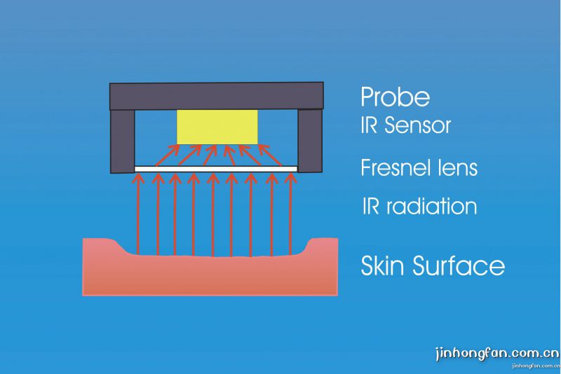探頭通過(guò)傳感器接收皮膚表面發(fā)出的紅外線來(lái)測(cè)試皮膚表面的溫度,這是一種皮膚 表面溫度的非接觸式測(cè)量方法??梢杂眠@種方法來(lái)測(cè)定皮膚表面在使用化妝品之后的微循環(huán)變化。